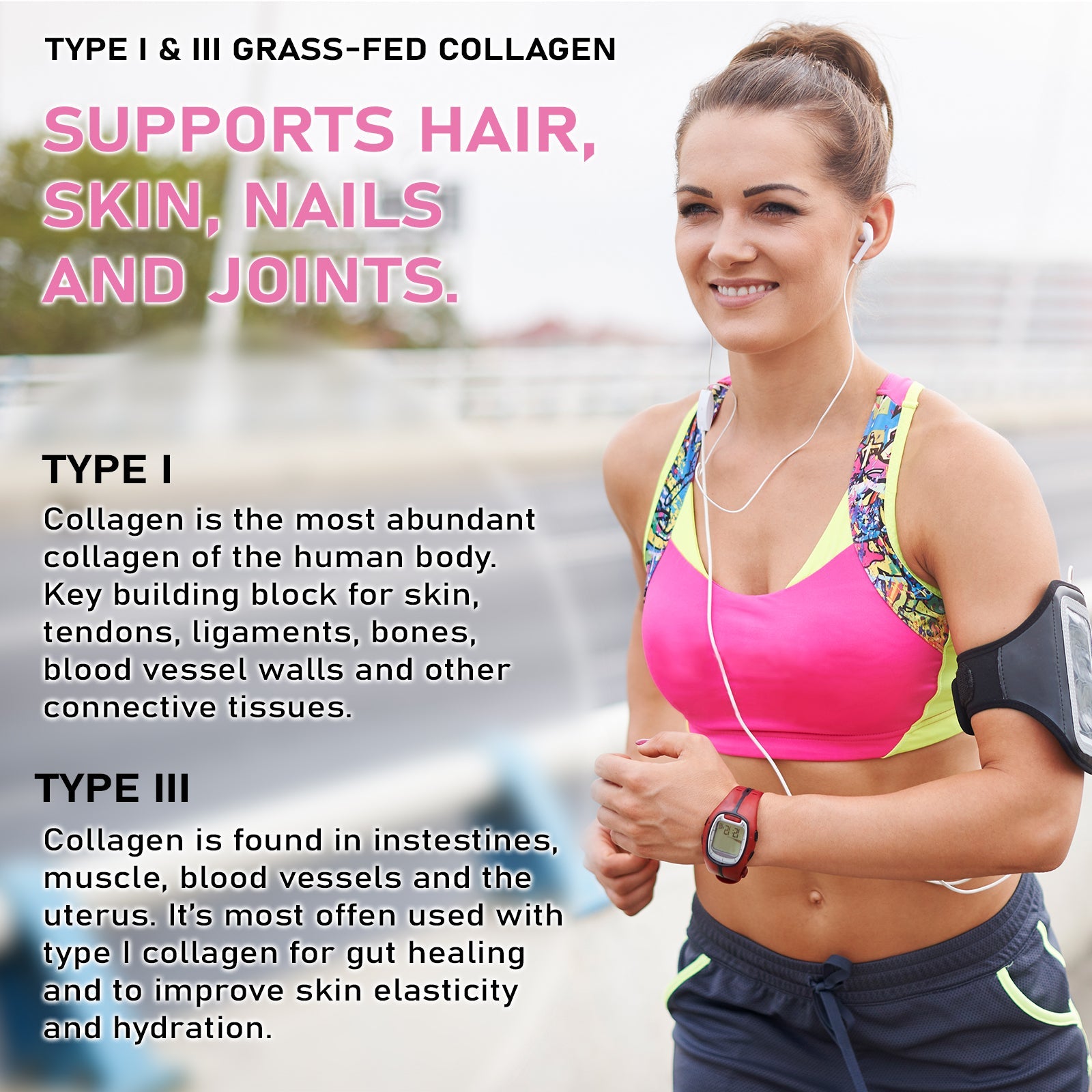 - Collagen provides structural support for the joints, reducing pain and inflammation, and improving mobility. It also plays a vital role in bone health by maintaining bone density and strength.
