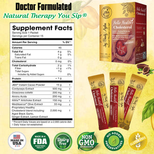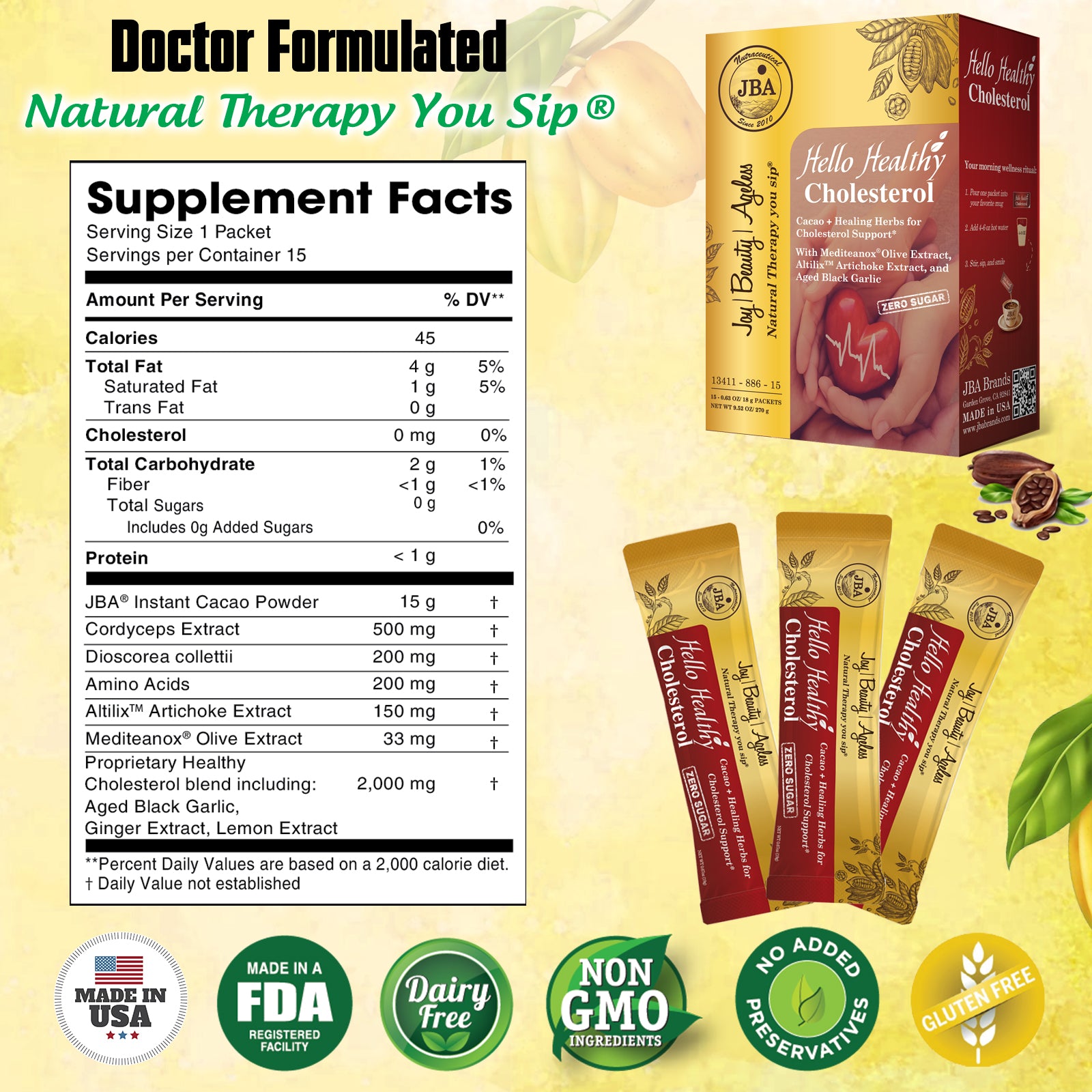 Treat yourself to a cup of our delicious Hello Healthy Cholesterol Hot Cacao and sip your way to a healthier you. Made with rich, indulgent raw cacao and infused with amino acids and botanical extracts , it’s a delicious way to support healthy cholesterol management.*