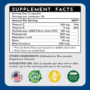 - Nattokinase: 2,000 Fibrin Units (FU), 100 mg†