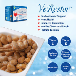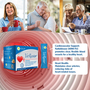 Experience the power of VeRestor™, a premium cardiovascular support supplement formulated with 4000 FU of Nattokinase per serving. Nattokinase is a potent enzyme, originally discovered in Japan, known for its ability to help maintain clear, flexible blood vessels, promote heart health, and support optimal circulation.